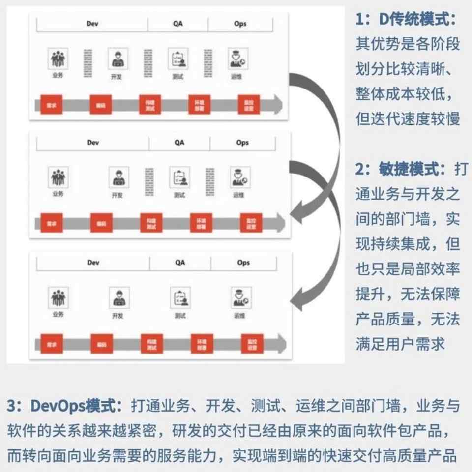 DevOps強(qiáng)調(diào)自動(dòng)化、持續(xù)集成、持續(xù)交付,以及跨職能團(tuán)隊(duì)的合作(融合為類似一個(gè)團(tuán)隊(duì))交付,同時(shí)提高交付的效率和質(zhì)量。