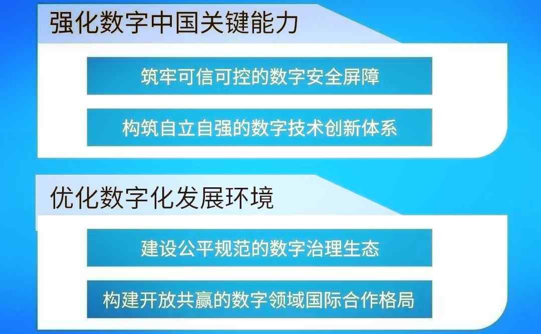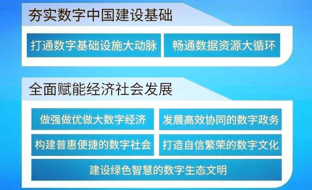 《數(shù)字中國建設(shè)整體布局規(guī)劃》從整體目標(biāo)、整體框架出發(fā),對數(shù)字中國的建設(shè)基礎(chǔ)、經(jīng)濟(jì)社會(huì)發(fā)展賦能、強(qiáng)化關(guān)鍵能力、優(yōu)化發(fā)展環(huán)境、組織保障等方面提出明確要求。