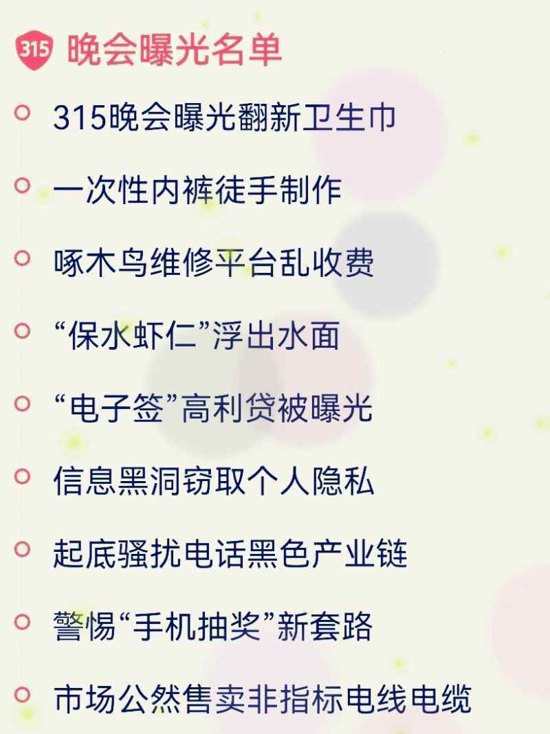 2025年國際消費者權(quán)益日,央視315晚會曝光了翻新衛(wèi)生巾、徒手制作一次性內(nèi)褲、維修平臺亂收費、保水蝦仁“泡藥”、電子簽“助紂”高利貸、軟件平臺竊取用戶信息、騷擾電話黑色產(chǎn)業(yè)鏈、手機抽獎騙局、不合格電線電纜,每一件都聳人聽聞。
