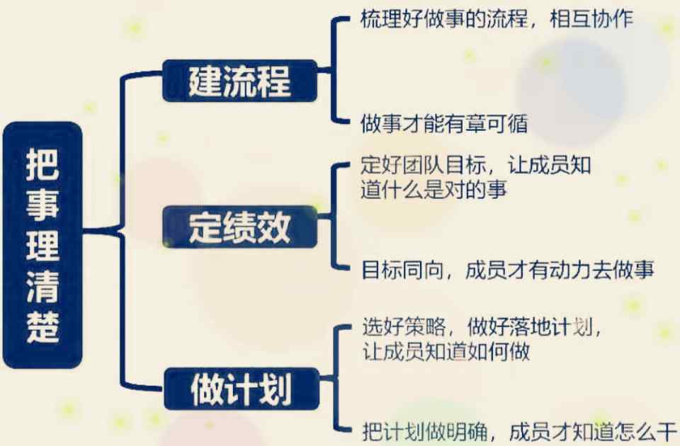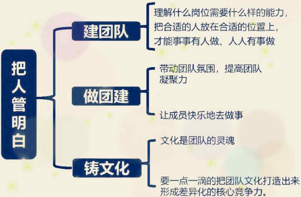 管理的兩大核心:管事(建立流程、制定目標(biāo)、管控考核),管人(人崗匹配、團隊建設(shè)、文化塑造)