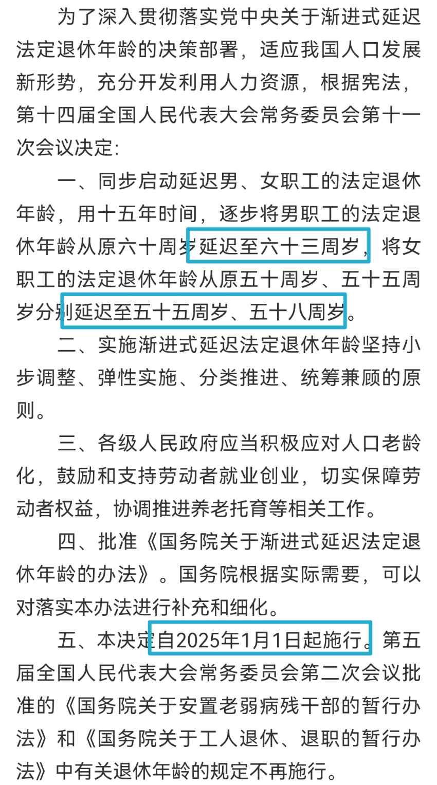 (5)漸進(jìn)式延遲法定退休年齡辦法的決定自2025年1月1日起施行。原有的部分關(guān)于退休年齡的政策不再施行。
