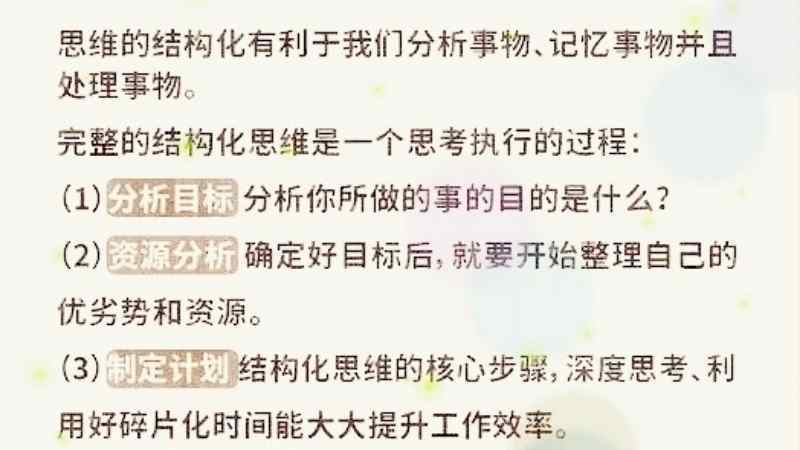 結(jié)構(gòu)化(有序、系統(tǒng))思維:明確核心論點(diǎn)→對(duì)結(jié)構(gòu)進(jìn)行拆解(有規(guī)則、有次序、有層次)→不重疊不遺漏的細(xì)化→對(duì)每一個(gè)分論點(diǎn)的驗(yàn)證。
