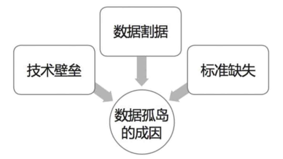 數(shù)據(jù)孤島指不同組織或部門獨(dú)立收集、存儲(chǔ)與處理數(shù)據(jù),導(dǎo)致它們之間的數(shù)據(jù)產(chǎn)生物理或邏輯上的隔離,形成數(shù)據(jù)的孤島。