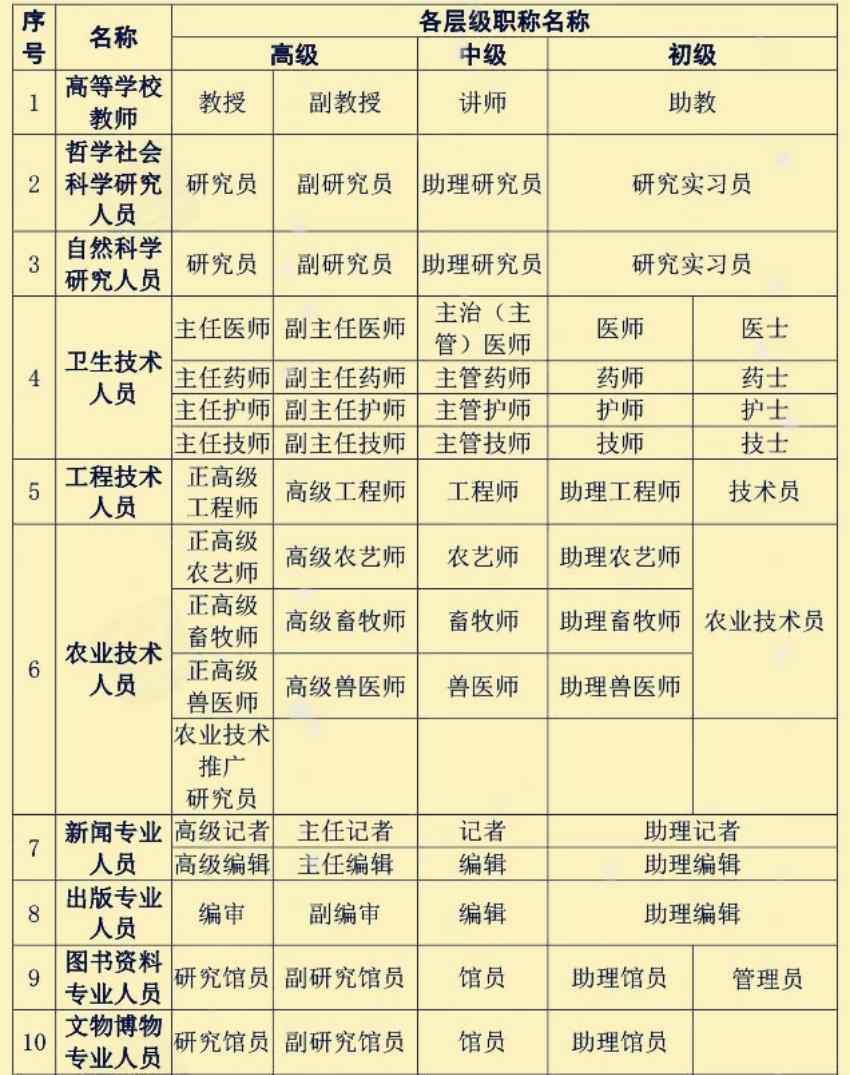 職稱認(rèn)定27個(gè)職稱系列或?qū)I(yè)。職稱層級分為高級、中級、初級,而每一個(gè)職稱系列或?qū)I(yè),職稱層級又有不同的劃分。